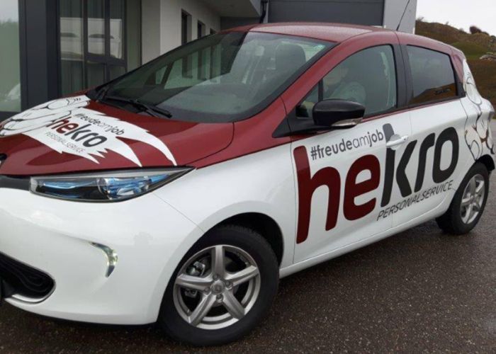 Wir denken an die Zukunft und erweitern unsere Firmenflotte 100 Prozent emissionsfrei! Mit unseren neuen Elektroautos ZOE sind wir im Trend und schützen die Umwelt. Unsere Personalberater sind ab heute für Sie umweltfreundlich unterwegs.